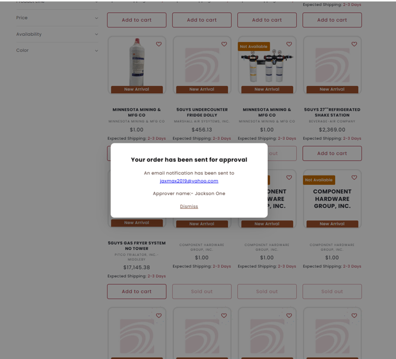 - When you submit an order for approval, a popup notification will appear confirming that your order has been sent for approval. Both End User and Approver will receive email notification with order details.