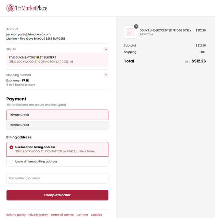 To log in to TriMarketplace, type your email address into the address bar.
