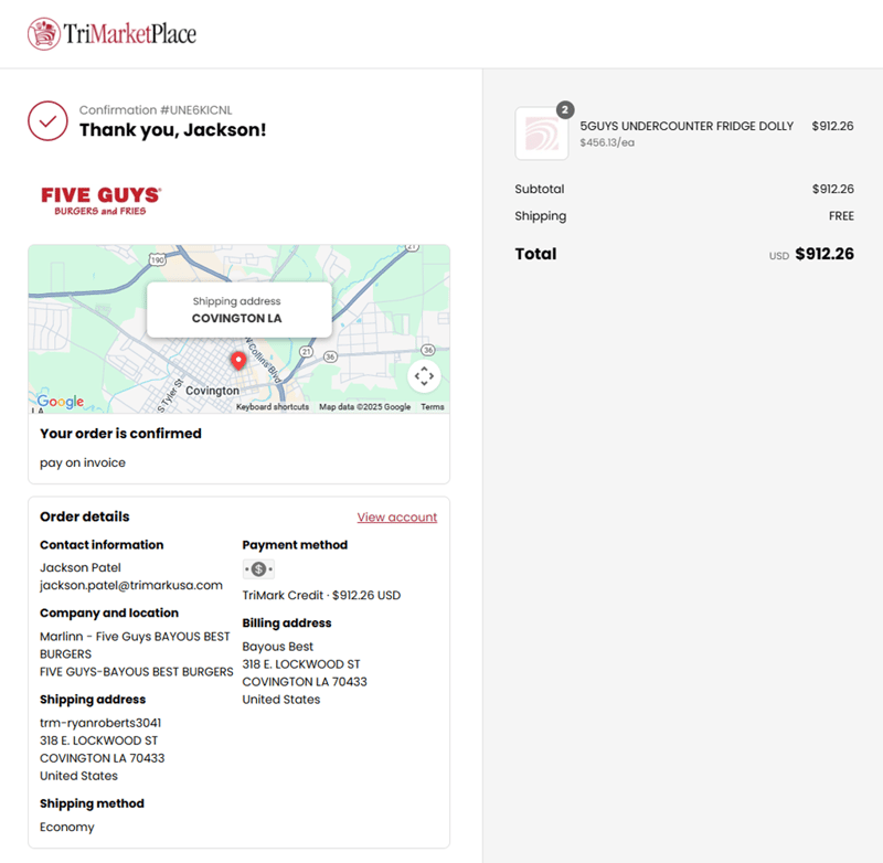 If your order total is below the set approval limit, it goes through automatically.